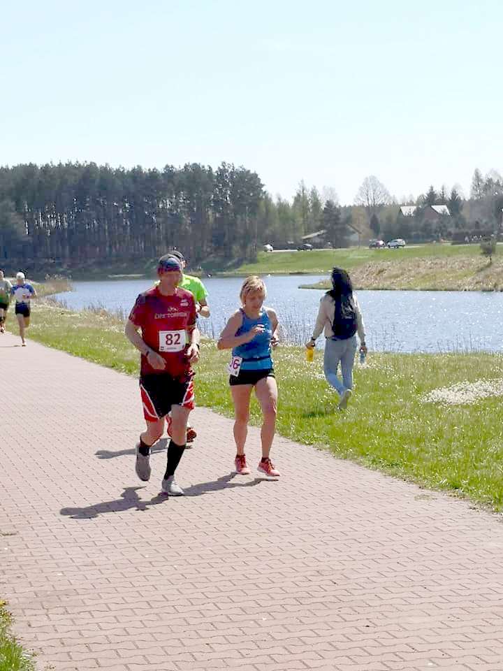 Z kolei 9 maja wokół Zalewu Bliżyńskiego na rzece Kamienna, z udziałem 138 biegaczy odbył się Maraton Świętokrzyski. Uczestnicy biegu mieli do pokonania dystans 42,195 km tj. 17 okrążeń, każde o długości ok. 2,52 km. I tym razem pani Jola stanęła na „wysokości” zadania stając na najwyższym stopniu podium w kategorii K50.