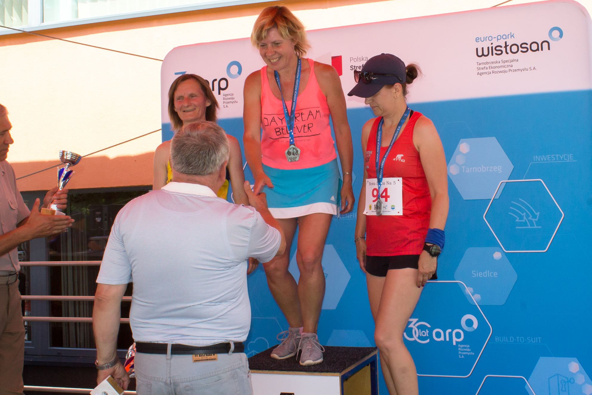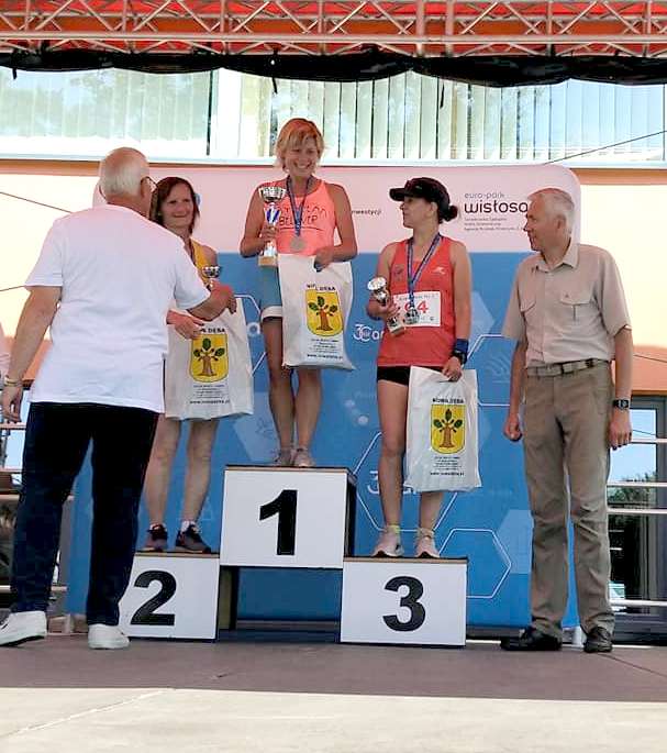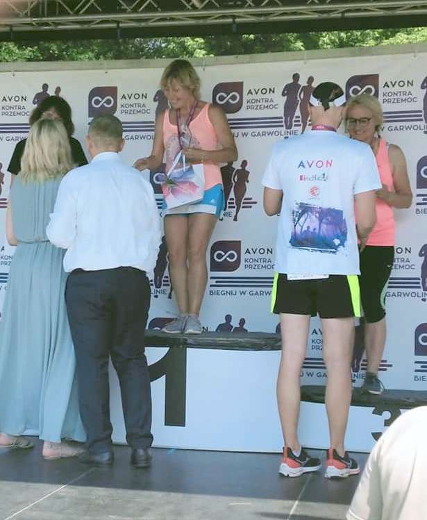 Pani Jola Żebrowska, bo o niej mowa, najpierw skierowała się na południe, gdzie w dniu 19 czerwca odbył się bieg uliczny „Nowa Dęba na 5”. Zawodniczka Chemik Noxy Puławy, startując z nr 6, spisała się na szóstkę, czyli celująco, zajmując w kategorii K50 pierwsze miejsce. Natomiast w niedzielę udała się na północ, a dokładnie do Garwolina, aby wystartować w 12 edycji biegu "Avon Kontra Przemoc - biegnij w Garwolinie". Na 10 kilometrowej trasie, pani Jolanta Żebrowska reprezentująca Ognisko TKKF Chemik, tradycyjnie zajęła pierwsze miejsce w kategorii K50. Nic dodać, nic ująć – brawo!