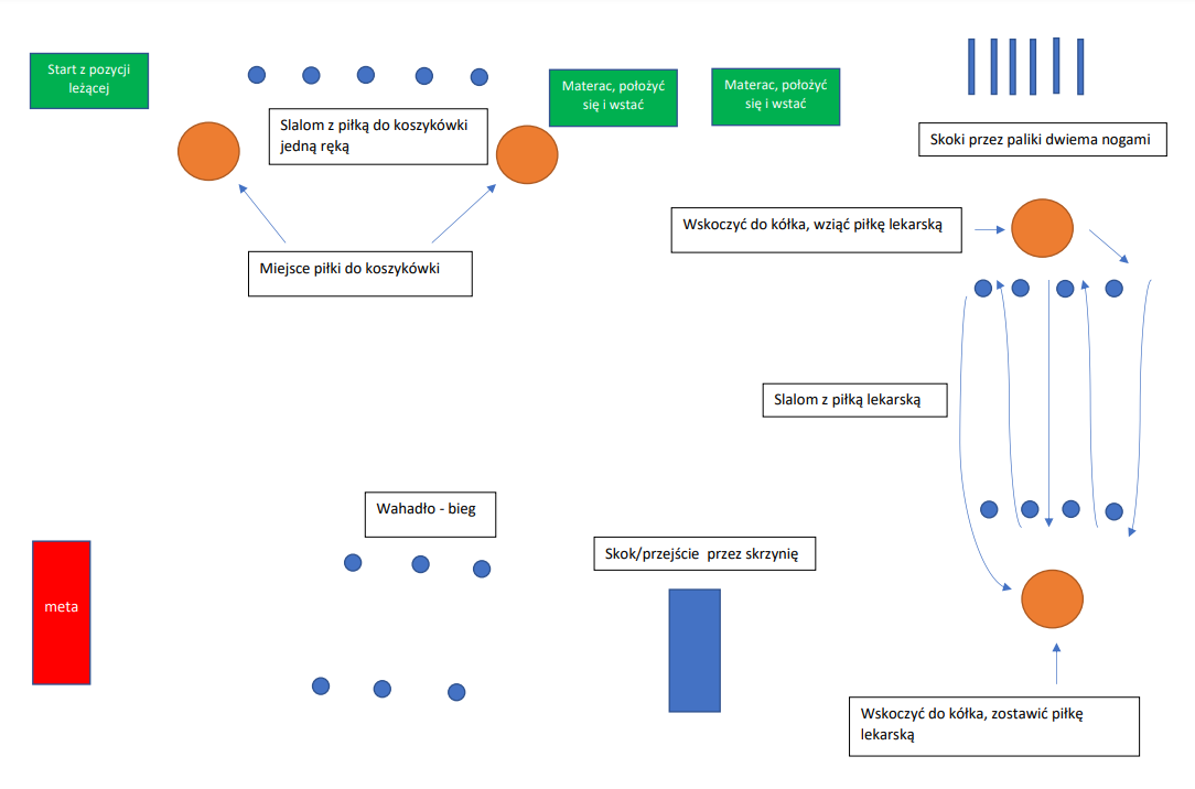 - Sposób przeprowadzenia – Konkurencja będzie polegała na pokonaniu ustawionej przez organizatora ścieżki sprawnościowej w jak najkrótszym czasie. Schemat ścieżki w załączeniu. Wprowadza się dla mężczyzn podział na kategorie wiekowe – do 45 lat włącznie oraz powyżej 45 lat